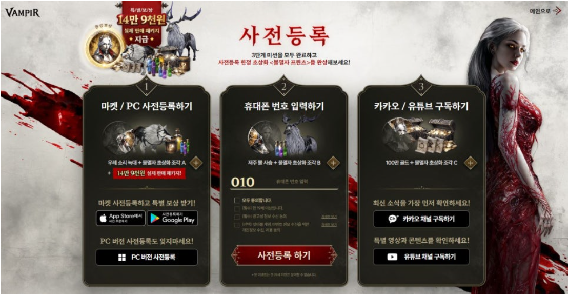 넷마블 신작 뱀피르의 사전예약이 현재 진행 중이며, 아래 링크를 통해 참여하실 수 있습니다.